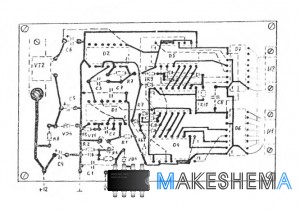 Элементы устройства монтируются на печатной плате (рис.2) из одностороннего фольгированного стеклотекстолита толщиной 2 мм.